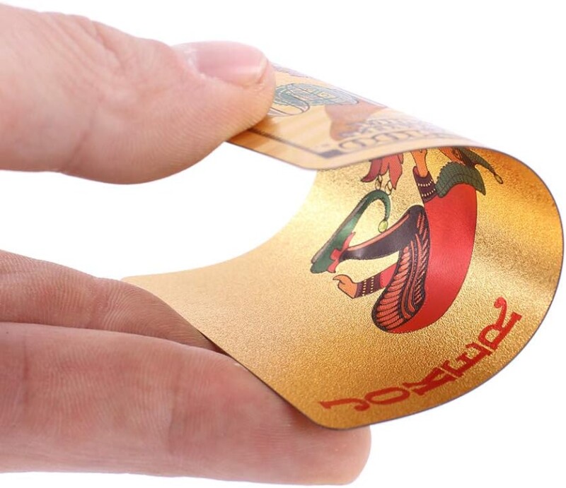 Unlike normal poker cards these cards are designed with gold foil giving them shiny, delicate and luxurious look. Excellent quality playing cards, made from durable high quality material. They have a shiny slippery surface making them easy to shuffle.