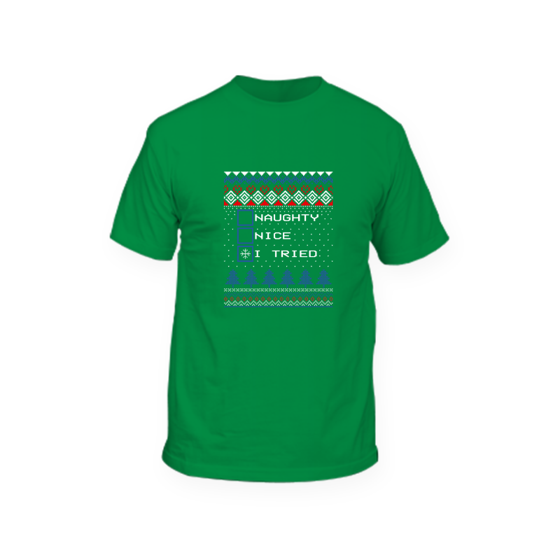 Have your t-shirt look like a Christmas jumper. With these fake jumper like designs. Save money on an expensive Christmas jumper by having one of our Christmas designs printed onto a T-shirt.
