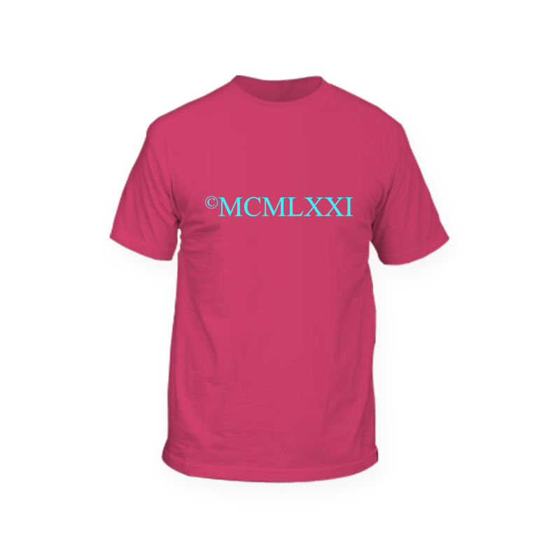 Enter your birthdate example 1971 in the text box for your own personalised t-shirt which displays your birthdate in Roman numerals alongside the copyright symbol. A great fun t-shirt to wear.