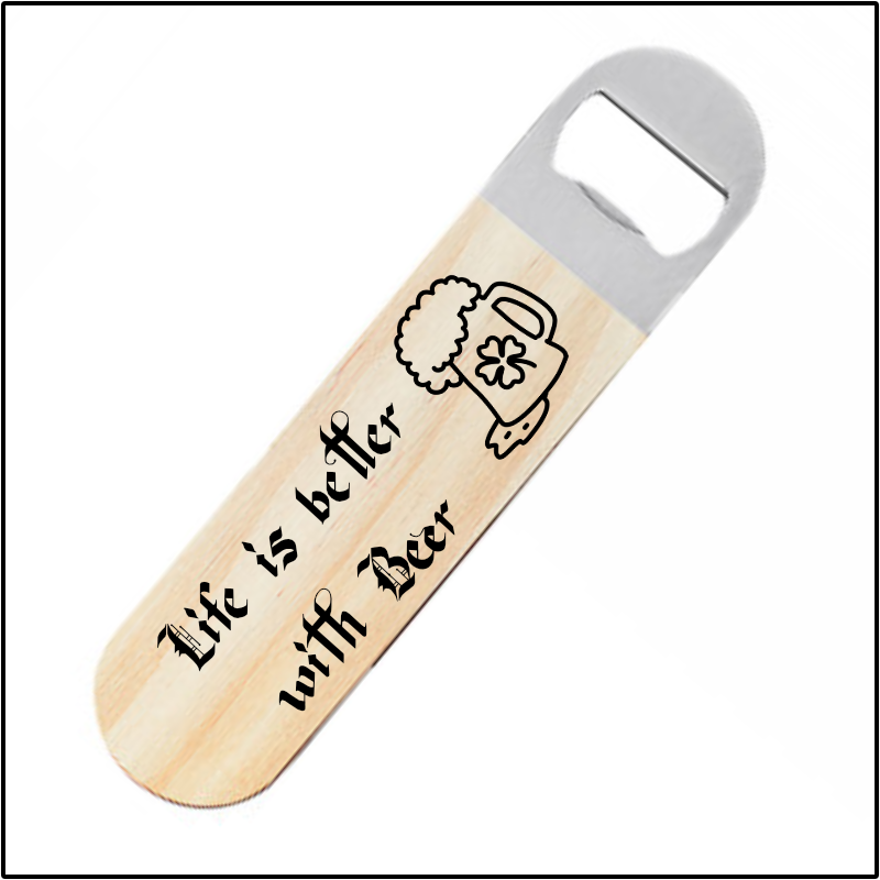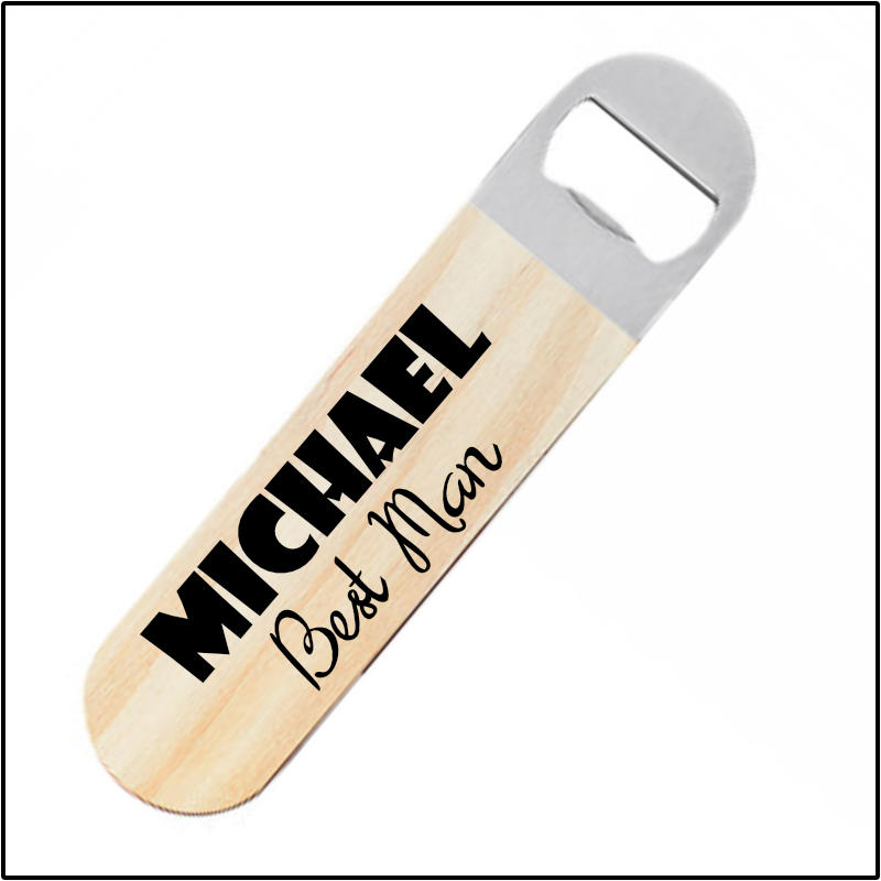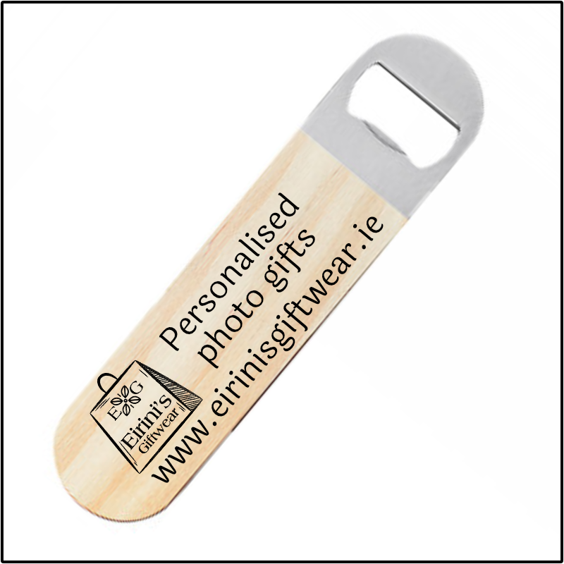 This high quality stainless steel bottle opener with wooden handle is ruggedly made and is designed to last a lifetime. Measuring at a convenient size, it fits comfortably in the hand, ensuring a secure grip for effortless bottle opening. Dimensions are 174mm x 40mm and it’s 8mm thick. Give this bottle opener as a present and the recipient will know you care about quality. The natural colour with wood grain is on one side and on the other side we can print your name, logo, sports, band name etc to personalise it.
