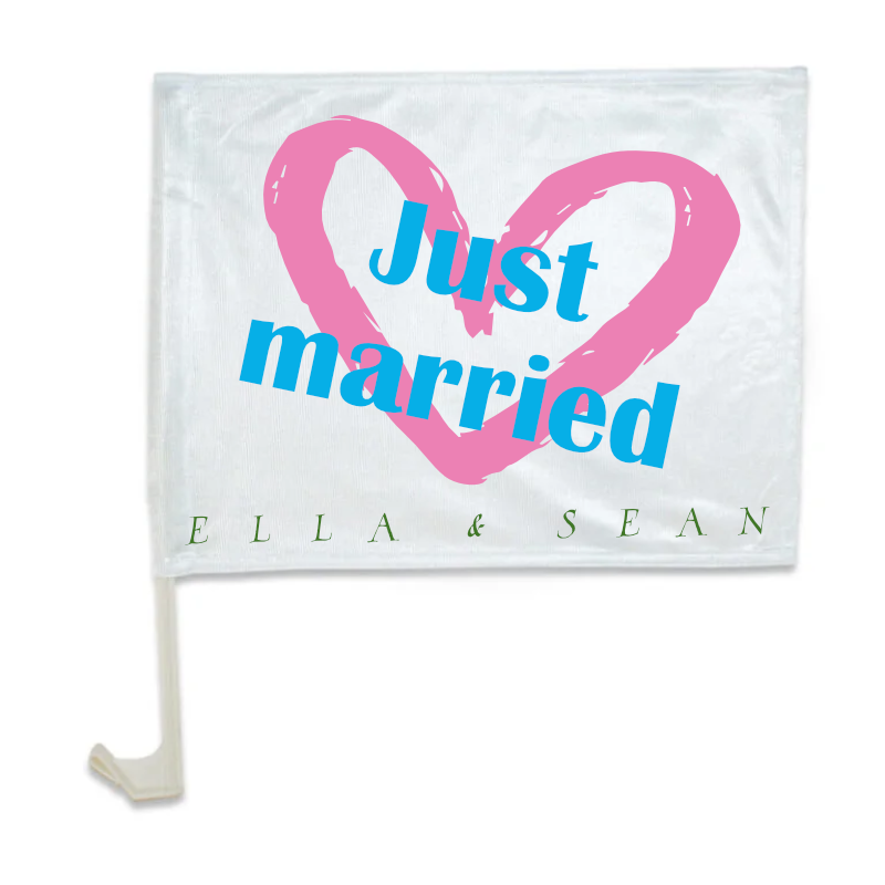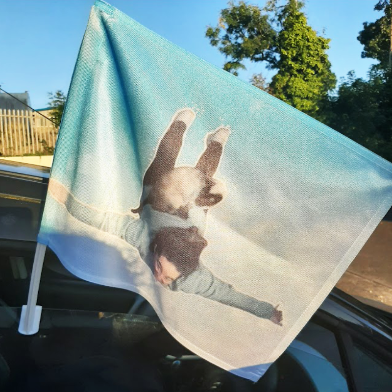 A great way to show your support and or affection for your favourite sports team, or band etc. These car flags allow you to drive around whilst showing people and carrying a message to the community. They also look elegant on a newlyweds car displaying ‘Just Married’, other ideas would include personalised Saint Patricks day flag, special messages for family members, birthdays etc. Simply clips on to the window.