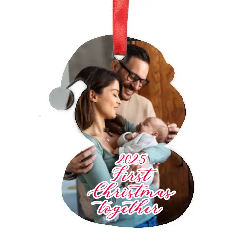 Decorate your tree this year with our beautiful hanging snowman shape, tree ornament. The ornament is made of MDF and accepts 2 photographs, 1 on each side. Alternatively you could have a short sentiment on one or both sides. A fabulous way to attract attention to your festive tree. The ornament comes with a red ribbon to attach it to the tree.