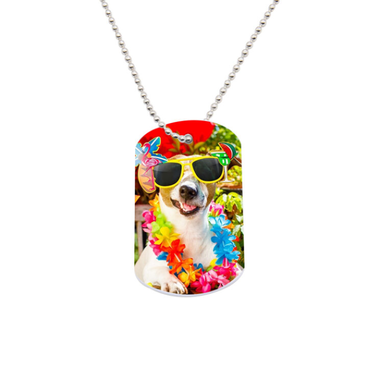 This ID dog tag can be printed on both sides. It’s a classical ‘jewellery’ for your pet that you can have personalised with the photo of your dog, name, telephone number in case lost and anything else you wish. Can also be ideal as a pet gift for a cat or dog lover. Does not come with a chain.