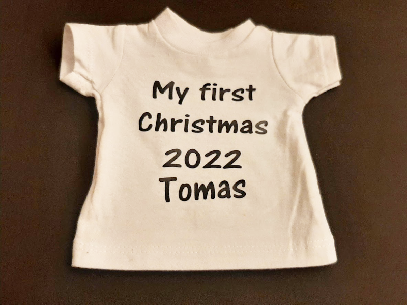These mini t-shirts look great when personalised with a message for your kids teddy bear, examples First Christmas, Birthday, or a loving message for Valentines or any other occasion.