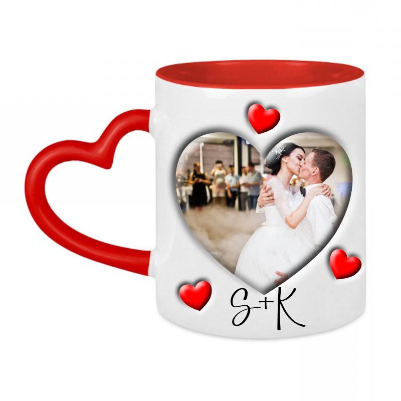 An elegant personalised 11oz mug with heart shaped handle and inside coloured red. This stylish mug really conveys your feelings towards someone special. This mug would make an ideal Valentine’s gift for that someone special, especially when adorned with a picture and loving words for your loved one.