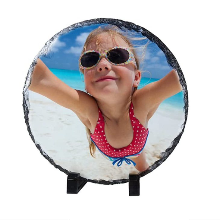 A handcut round natural stone slate coaster with high gloss finish. Makes your photos really pop. Hard wearing these coasters should last you a lifetime. Bring some real style to your table with these coasters. Ideal for gifts, for loved ones, Christmas, birthdays, weddings, anniversaries, retirement etc.