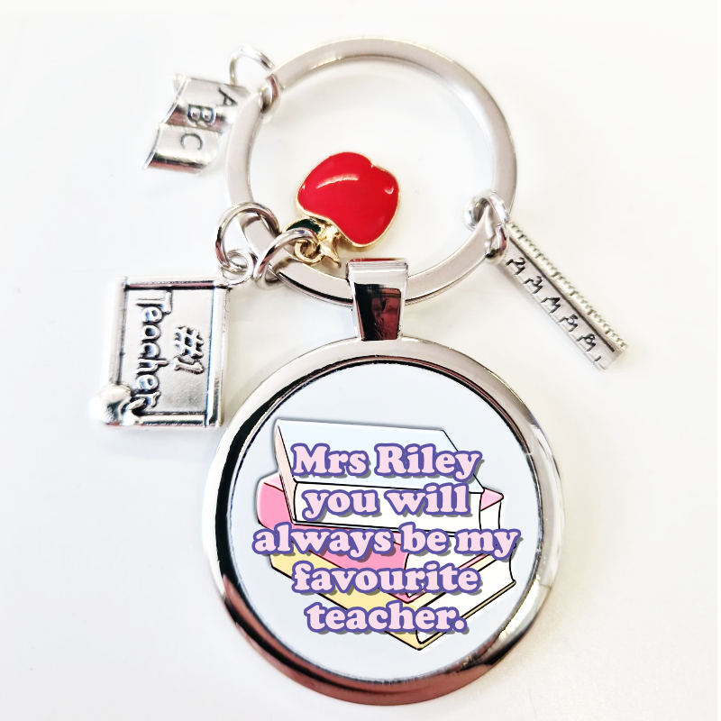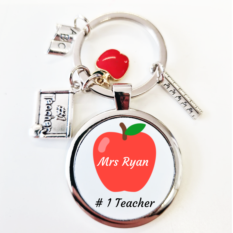 A high quality metal keyring, exclusively designed for showing appreciation for a special teacher. This keyring is sure to be cherished by it’s recipient and it’s an ideal way of showing the teacher how much the pupil appreciates him or her. It comes with 4 charms an apple, a ruler, a book with alphabet and a board that reads ‘#1 Teacher’.