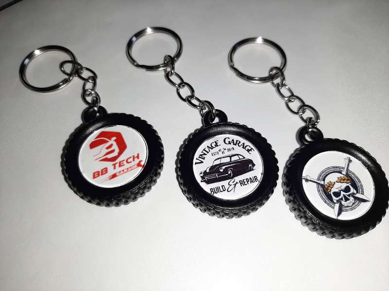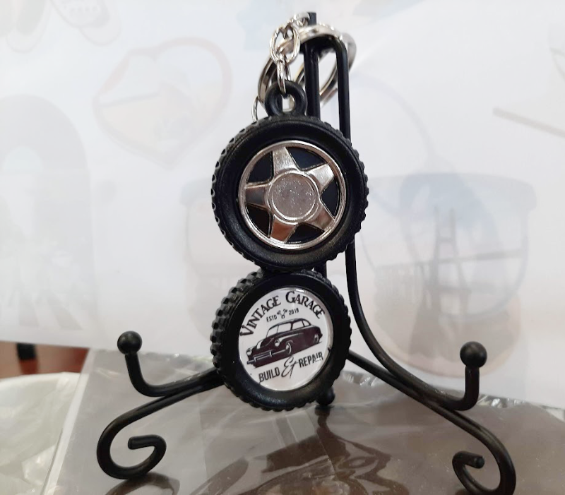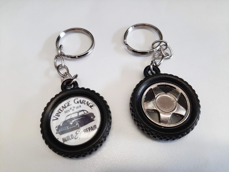 A very nice car tyre shaped keyring with a wheel rim design on one side and space for personalisation on the other. Ideal as a promotional item for garages/car repair, car sales etc. or as a gift for someone who is a car enthusiast.ย  A great keyring at a great price.