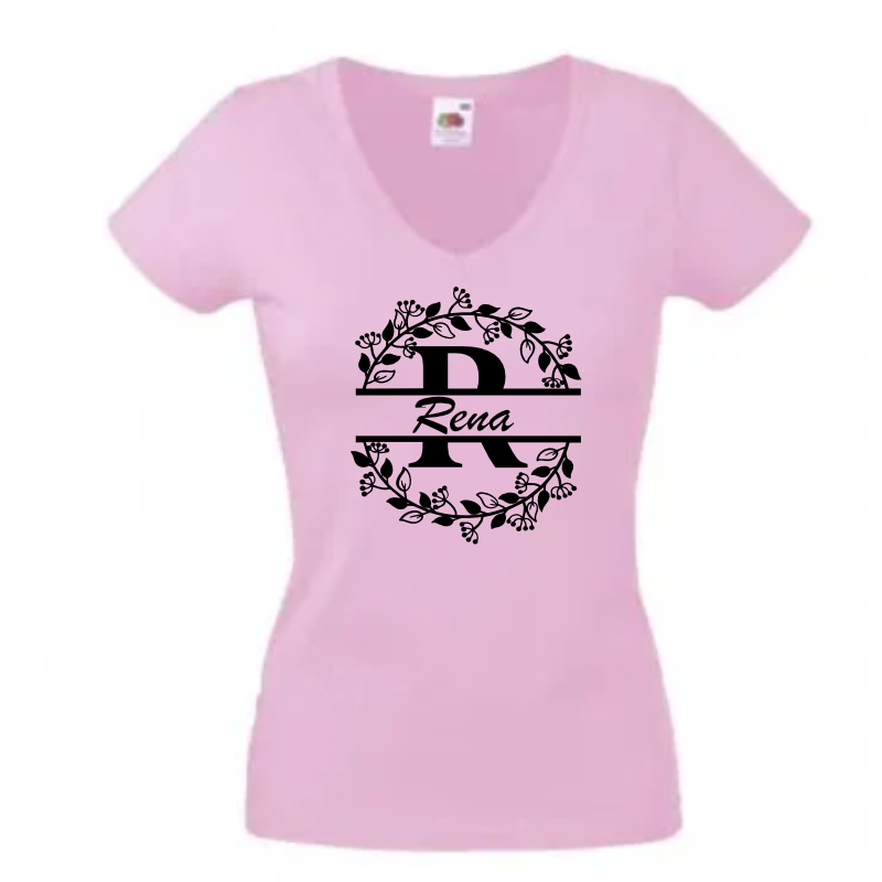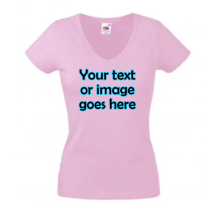 Personalised V neck Lady fit T-shirt pink (M-XXL)