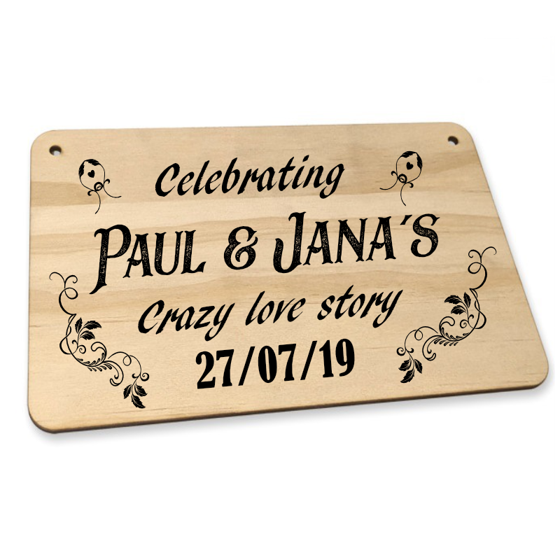 Personalised Wood Hanging Sign with black cord