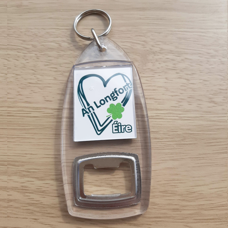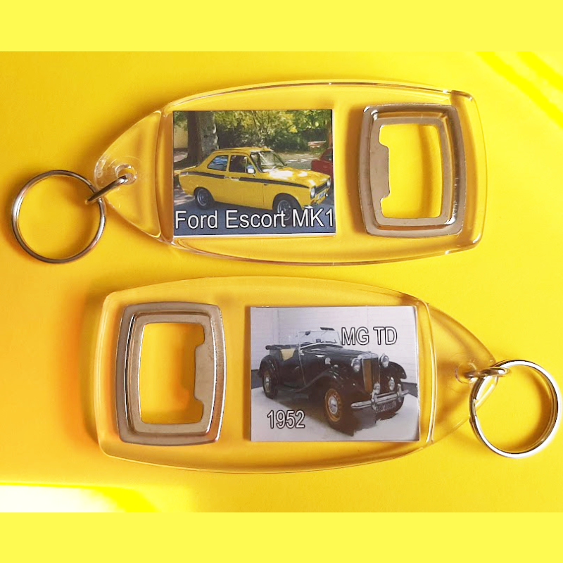 This double sided keyring has two functions, firstly as a standard keyring and secondly as a useful handy bottle opener. It can take two images and makes an ideal gift for someone who enjoys barbeques, camping or has a home bar.
