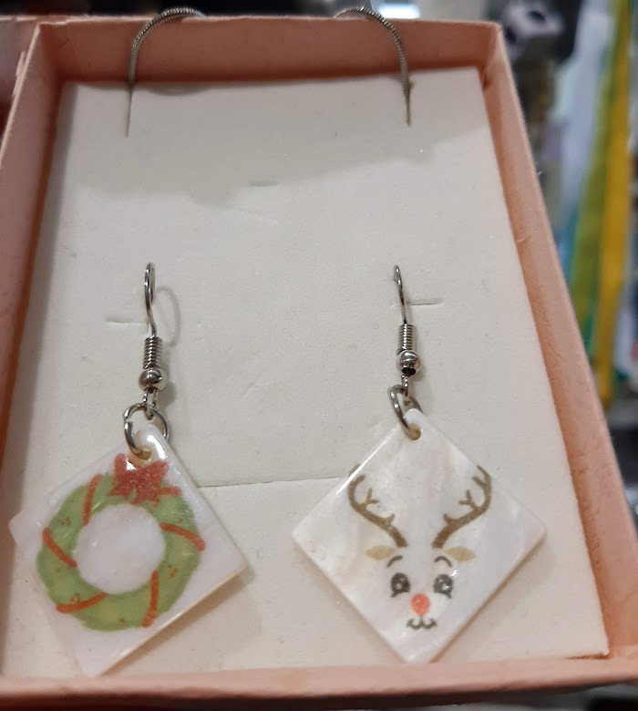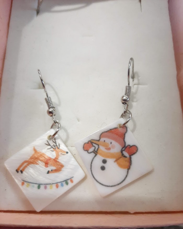 Ideal for a Christmas gift, you can have a Christmas design on one side and a monogram or name on the other side. On the picture above you can see the 2 different designs I have on the earrings, one side has the snowman and the other side has the reindeer. You can wear them 2 same designs together or 2 different ones as seen on the picture above. The choice is yours.